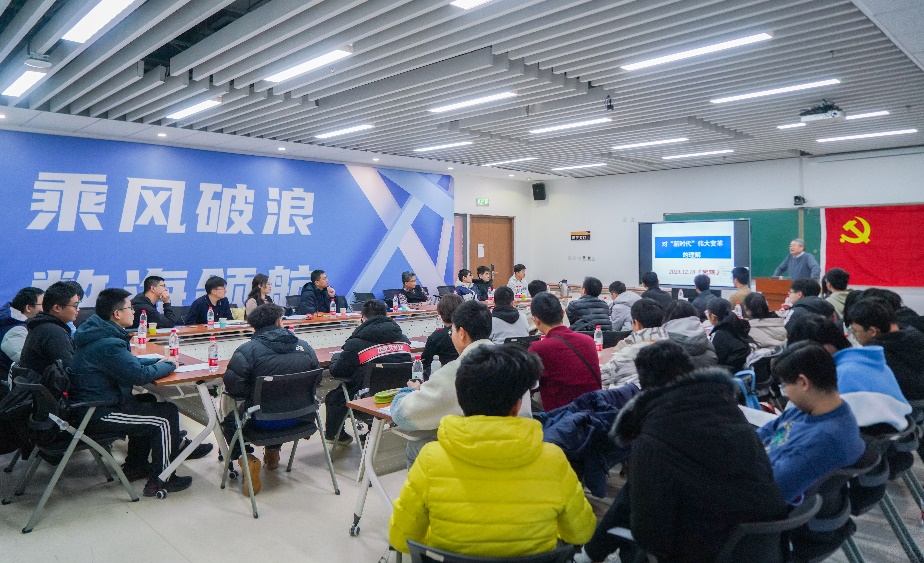 黄海军主讲“对‘新时代’伟大变革的理解”主题党课,从时空上、内容上、意义上发生的伟大变革三个方面,梳理了新时代伟大变革的深刻内涵。黄海军表示,新时代十年的历史性变革体现在改革发展稳定、内政外交国防、治党治国治军各方面,是全方位、根本性、格局性的,为实现第二个百年奋斗目标、实现中华民族伟大复兴奠定了更为坚实的政治基础、思想基础、物质基础、制度基础。
