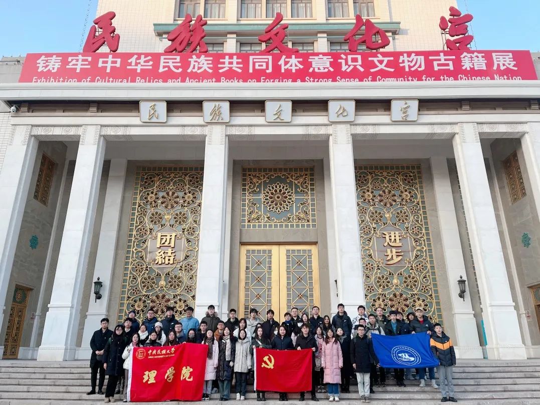 为引导青年学生牢固树立正确的中华民族历史观,铸牢中华民族共同体意识,积极投身实现高水平科技自立自强的基础学科研究中,12月27日,新葡萄8883官网amg官网新葡萄8883官网amg官网本科生党支部与中央民族大学理学院本硕学生党支部在民族文化宫开展了“勇担时代使命,争做强国先锋”联学联建活动。中央民族大学理学院党委副书记李松洁、党务秘书胡佳媛,新葡萄8883官网amg官网新葡萄8883官网amg官网分团委书记程乾以及两院50余名师生党员、入党积极分子参加了此次活动。