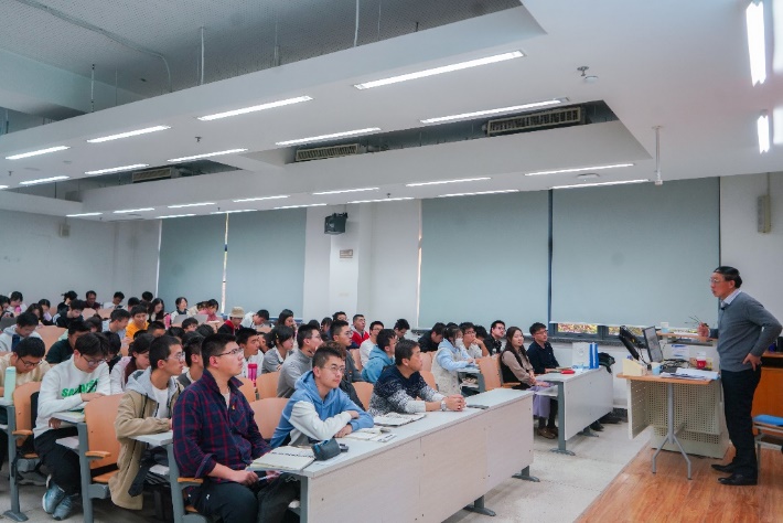 118日下午,新葡萄8883官网amg官网2023年秋季学期院党校第一次党课暨开班仪式于沙河校区J5-102举行。本次党课由中国航空技术国际控股有限公司原高级副总裁黄斌主讲。学院党委副书记魏茜、专职辅导员程乾出席,近150名学生党员和入党积极分子聆听学习。