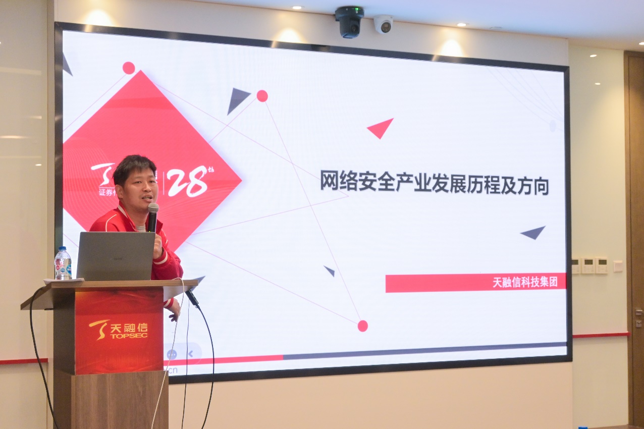 “没有网络安全就没有国家安全,没有信息化就没有现代化。” 天融信科技集团高级副总裁寇增杰在交流会上致辞,他分享了网络安全行业的诞生背景与发展现状,强调了网络安全行业对国家的重要性,并鼓励新葡萄8883官网amg官网的同学们积极投身网络安全领域,为网络强国建设做出自己的贡献。