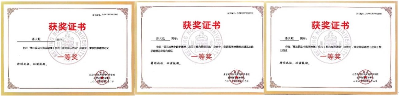 在近日结束的第三届高中数学建模(应用)能力展示活动中,新葡萄8883官网amg官网依托“英才计划”,由院长韩德仁教授牵头,指导北京市陈经纶中学学生潘天屹完成作品“智能机器人停车泊位最优路径的研究分析”,斩获数学建模(应用)能力测试一等奖、数学建模论文一等奖和综合成绩一等奖。