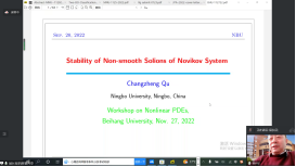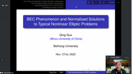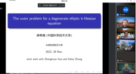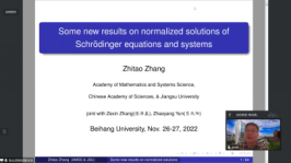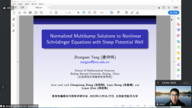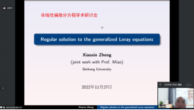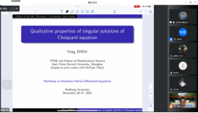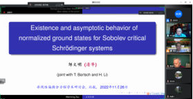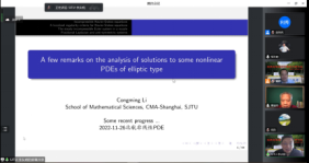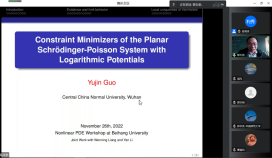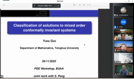 为了交流非线性偏微分方程及相关领域的最新研究成果,为偏微分方程及其相关领域专家学者提供探讨、交流最新研究方向和研究成果的平台,促进偏微分方程及相关领域的发展,新葡萄8883官网amg官网于2022年11月26日至27日举办了“新葡萄8883官网amg官网非线性偏微分方程学术研讨会”。保继光教授(北师大)、曹道民教授(中科院)、邓引斌教授(华中师大)、丁彦恒教授(中科院)、郭玉劲教授(华中师大)、郭玉霞教授(清华大学)、郭宗明教授(河南师大)、李从明教授(上海交大)、刘兆理教授(首都师大)、麻希南教授(中科大)、苗长兴教授(北京应用物理与计算数学研究所)、彭双阶教授(华中师大)、屈长征教授(宁波大学)、唐仲伟教授(北师大)、杨健夫教授(江西师大)、严树森教授(华中师大)、张志涛教授(中科院、江苏大学)、周风教授(华东师大)、周焕松教授(武汉理工)、邹文明教授(清华大学)等专家学者参会并做学术报告,来自北航和全国的近200名师生参加此次会议。