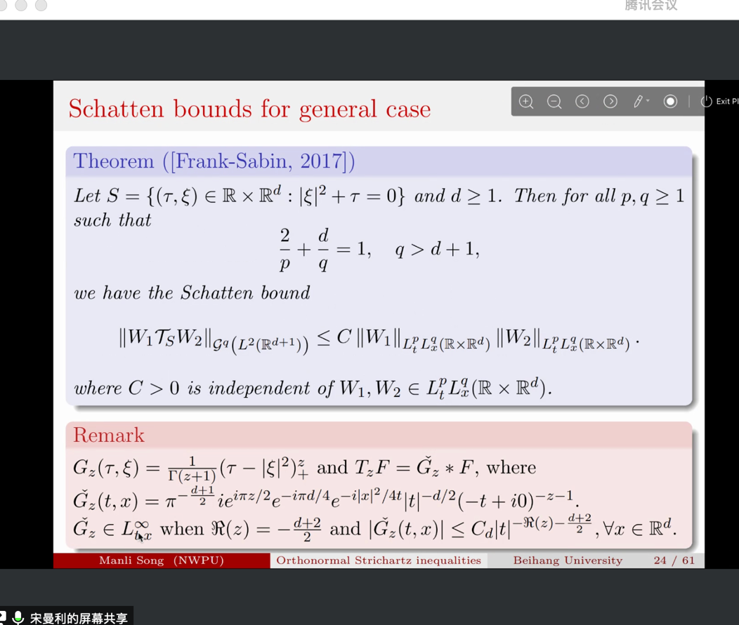 2022年10月28日,西北工业大学宋曼利教授应邀为新葡萄8883官网amg官网师生做了题为 “Orthonormal Strichartz inequalities for the $(k, a)$-generalized Laguerre operator and Dunkl operator”的学术报告,报告由张安老师主持。
