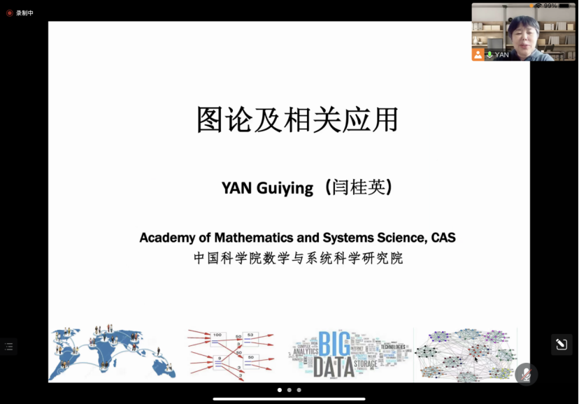 2022年6月8日下午16时,中国科学院数学与系统科学研究院二级研究员、博士生导师闫桂英为我院师生带来了一场题为“图论及相关应用”的学术报告。报告由新葡萄8883官网amg官网院长韩德仁主持,采用线上腾讯会议形式进行。