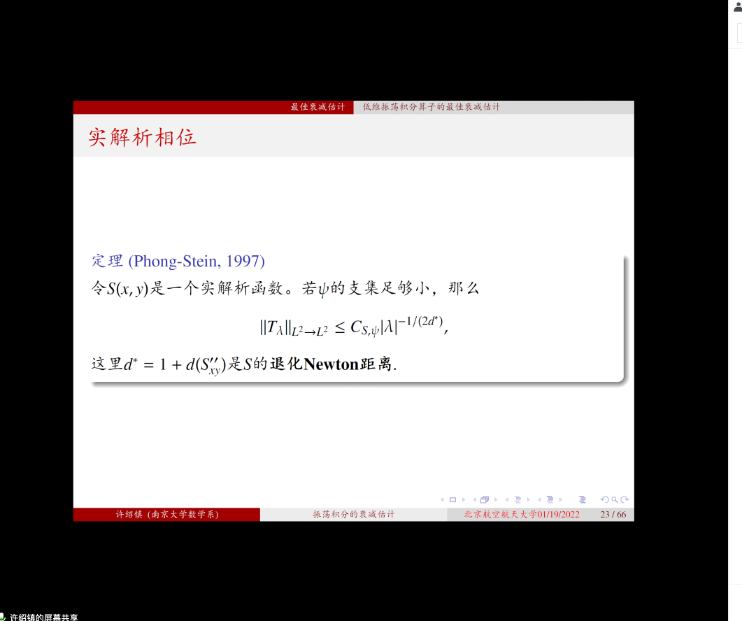2022年01月19日下午,南京大学许绍镇老师应邀为新葡萄8883官网amg官网师生做了题为 “振荡积分的衰减估计”的学术报告,报告由张安老师主持。
