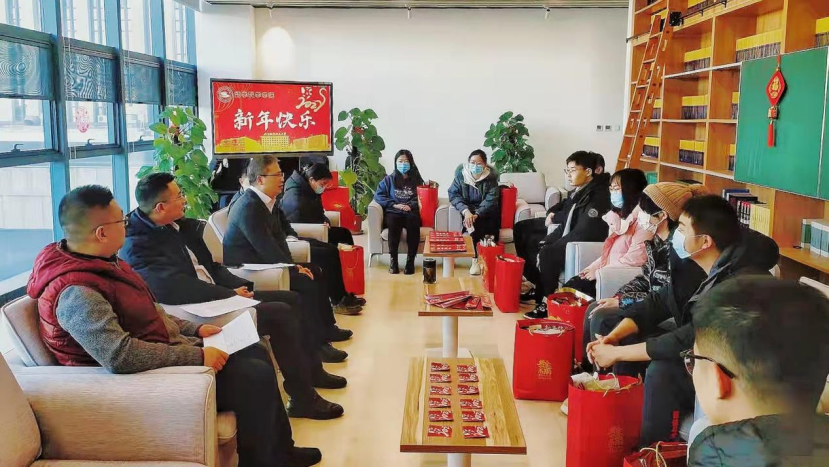 金牛奋蹄欲奔往,猛虎长啸逢今朝,1月29日,新葡萄8883官网amg官网院长韩德仁、党委书记袁星、副院长夏勇、党委副书记曾煜以及导师和班主任代表赴沙河校区看望学院寒假留校学生,送去新春祝福,并了解在校学生的生活情况。