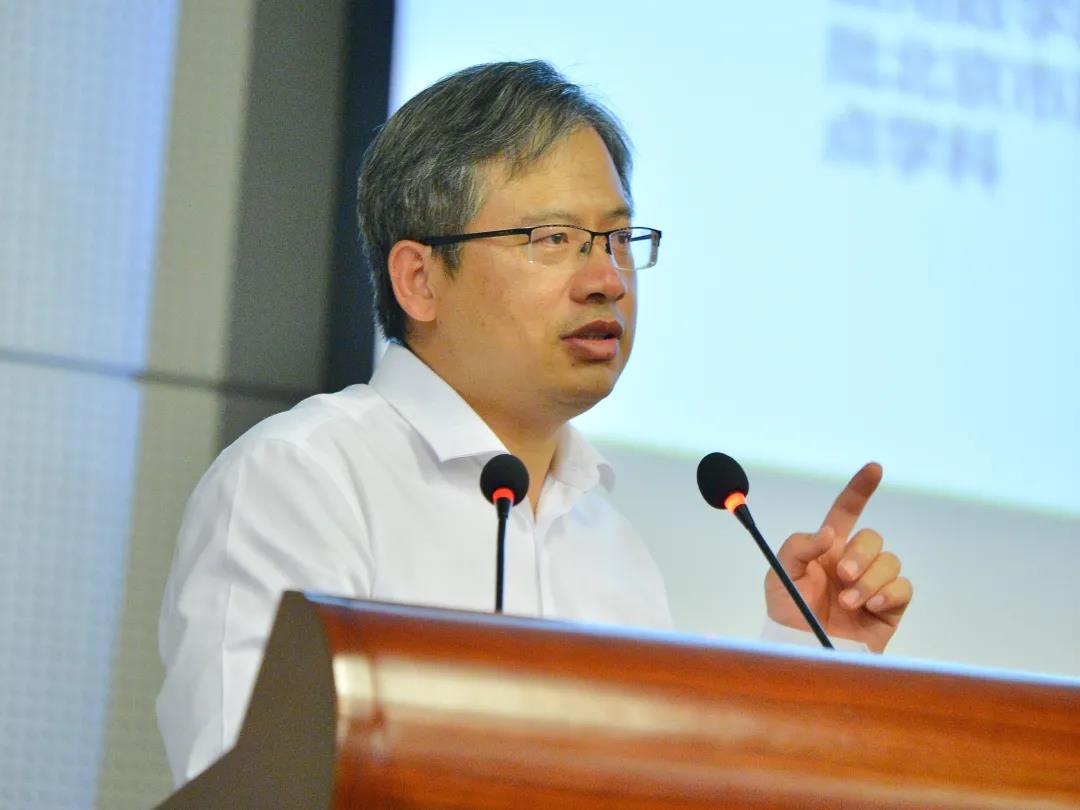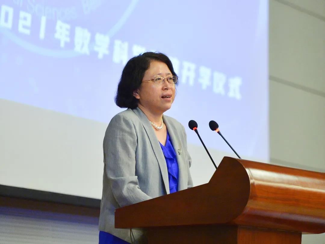 仪式最后,韩德仁院长从学院简介、师资队伍、科学研究、人才培养等方面讲授新生第一课。他从学院的发展历程与丰硕成果,展望学院未来发展建设,并以习近平总书记在庆祝建党百年讲话中对青年人的期望为纲要,寄语新生不忘初心,感受数学之美,体悟数学之用,涵养科学精神,久久为功,笃行实干。