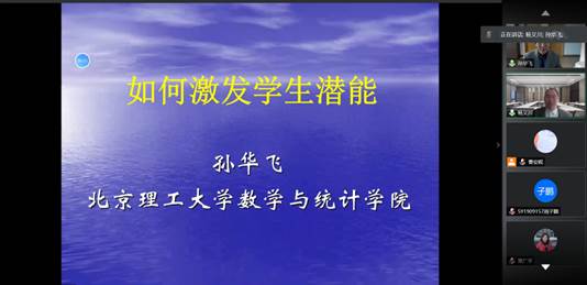 12月30日,“北航数学教学研究中心名师讲座” 首次线上报告活动顺利举行。北京理工大学孙华飞教授为学院师生作了《如何激发学生潜能》专题讲座,该报告吸引了来自北京地区包括北大等高校、以及江西、云南等地多所高校的师生在线学习交流。讲座由北航新葡萄8883官网amg官网本科教学副院长杨义川教授主持。