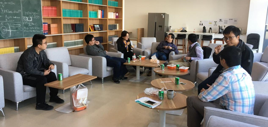 热核长期以来一直都是古典和现代数学的基本工具,而从20世纪70年代开始,热核也成为研究几何分析的重要工具。基于热核的方法广泛应用于分析、几何、概率以及物理学中。张振雷教授在报告中首先回顾了关于里奇曲率有下界的Li-YauYau这里指丘成桐先生)、DaviesGrigoryan等经典的热核估计,然后介绍了他与合作者最近关于热核估计的最新工作。张振雷教授的报告非常经常,参会者表示收获很大。报告结束后,并与几何组的老师在三楼的工会之家进行学术交流。