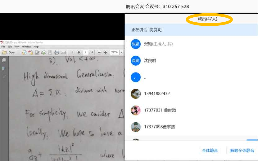 2020520日下午,我院基础数学系“青年教师科研工作论坛”在腾讯会议线上举办。会议由基础数学系系主任高鹏老师主持,近50名师生参加了论坛。