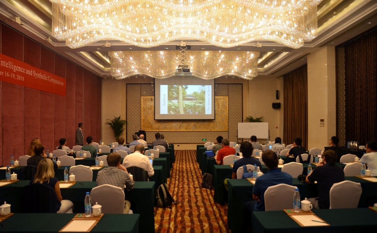 9月16日至19日,由新葡萄8883官网amg官网和北航苏州创新研究院主办的第13届国际人工智能与符号计算会议(13th International Conference on Artificial Intelligence and Symbolic Computation,AISC 2018)在苏州清山会议中心召开。会议由欧洲科学院院士、新葡萄8883官网amg官网教授王东明和德国卡尔斯鲁厄理工学院教授Jacques Calmet担任大会主席,英国爱丁堡大学教授Jacques Fleuriot担任程序委员会主席。英国皇家科学院院士、爱丁堡大学教授Alan Bundy、欧洲科学院外籍院士、南京大学教授周志华、纽约大学库朗研究所教授Chee K. Yap作大会特邀报告,英国巴斯大学教授James H. Davenport、加拿大劳里埃大学教授Ilias S. Kotsireas、奥地利因斯布鲁克大学教授Cezary Kaliszyk和新葡萄8883官网amg官网陈肖宇博士作分会邀请报告。国内外近五十名专家学者参加了会议。