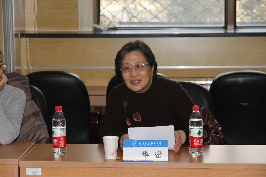 颁奖仪式上,北航数学学院院长郑志勇教授首先致辞,他先是对所有与会嘉宾的到来表示热烈的欢迎,对华密女士和中科院数学院对北航华罗庚班的关心和重视表示衷心的感谢。他指出,北航作为一所工科强校,要大力加强对基础学科的人才培养,华罗庚班的目标正是要培养具有坚实数理基础的高素质创新人才和具有解决重大应用数学问题潜质的复合型创新人才,希望今后可以继续与中科院加强合作。最后,他借用华罗庚先生“勤能补拙是良训,一分辛苦一分才”的诗句表达了对华罗庚班同学们的期待,希望同学们刻苦钻研,成为像华罗庚先生一样的人才。北航教务处处长王祖林教授在致辞中首先对北航华罗庚班多届学生被录取到巴黎高师等众多国内外名校的傲人成绩表示了高度的赞扬,接着他向获得2016年华罗庚奖的同学们表示祝贺与鼓励,他强调,希望获奖的同学们在今后学习的过程中戒骄戒躁、不辍努力,把华罗庚先生脚踏实地、勤奋向学的学习品质一直传承下去。中国科学院数学院副院长巩馥洲研究员对北航华罗庚班成立七年来取得的成果表示了充分的肯定,他指出北航华罗庚班是众多华罗庚班中最优秀的班集体之一,中科院数学院的多名院士与教授参与到华罗庚班本科生核心专业课程的授课以及科研项目指导中,效果十分显著,中科院今后会继续加强与北航华罗庚班的合作与联系,进一步提高北航数学学科的实力,同时欢迎华罗庚班同学们今后到中科院数学院深造。最后,他向华罗庚班同学们提出了几点要求和期望,希望同学们能全面发展,不仅在数学方面建树非凡,在文学造诣、工程技术等更多更广的领域内都能够有所突破。中科院数学院院长助理戴彧虹研究员宣读了“2016年华罗庚奖学金”获奖名单,华密女士与中科院数学院、北航的各位老师一同为获奖学生颁发证书。
