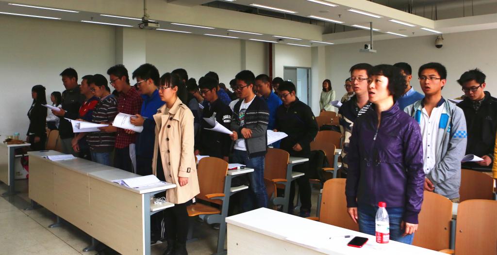 最后,全体学员起立奏唱国际歌,新葡萄8883官网amg官网数学与系统科学学院学生党校开学典礼暨第一堂党课在雄浑激昂的国际歌中圆满的落下了帷幕。