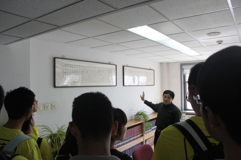 下午14时,2013级华罗庚班一行42人抵达中科院数学与系统科学研究院,洪佳林副院长亲自迎接并问候大家。他亲切地指出,中科院就是华罗庚班的家,欢迎同学们常回家看看。华班同学们在数学与系统科学研究院研究生部的精心安排下参观了数学馆,了解了中科院数学与系统科学研究院的发展史及自成立以来取得的辉煌成就。随后,又先后参观了科学与工程计算国家重点实验室、拥有丰富藏书的数学所图书馆和华罗庚纪念室,研究院的相关工作人员热情地为同学们进行了详细的讲解。