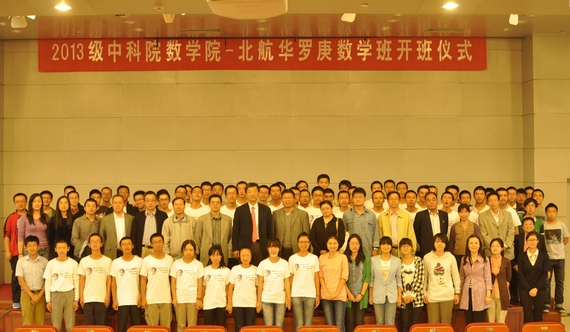 9月25日下午17:00,2013级中科院数学院-新葡萄8883官网amg官网华罗庚数学班开班仪式在实4-205教室隆重召开。中科院数学与系统科学学院院长王跃飞、副院长洪佳林等等领导和专家学者;我校校长怀进鹏院士,教务处领导,数学与系统科学学院的领导班子成员;以及2012、2013级华罗庚班全体同学参加了开班仪式。仪式由教务处处长冯文全主持。