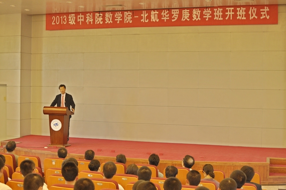 仪式开始,与会人员一同欣赏了由华罗庚班同学制作的视频——《致成长》。该视频介绍了华罗庚班三年来的建设、发展和风采。庄严肃穆的国歌过后,大会正式开始。校长怀进鹏院士,中科院数学与系统科学学院院长王跃飞研究员及2013级华罗庚班新生代表刘禹吟同学先后进行了精彩讲话与发言。