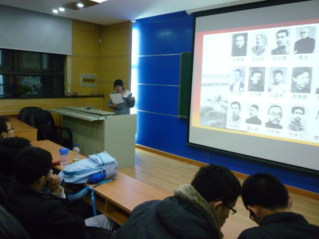 报告会进行最后一项内容,由王帅同学带领大家进行对习近平在十八届中共中央政治局第一次集体学习时的讲话的学习。她从全面建成小康社会,坚持和发展中国特色社会主义的五点要求,以及坚持党要管党、从严治党、全面加强党的建设三个角度分别对习总书记的讲话进行了阐释。最后,王帅指出,对于党的十八大以及习总书记的讲话的学习,不应该因为讨论会的结束而结束,所有的党员和积极分子都应该积极关注,主动学习,努力提高自身修养和认识,为国家和社会的建设和发展贡献出自己的一份力量。