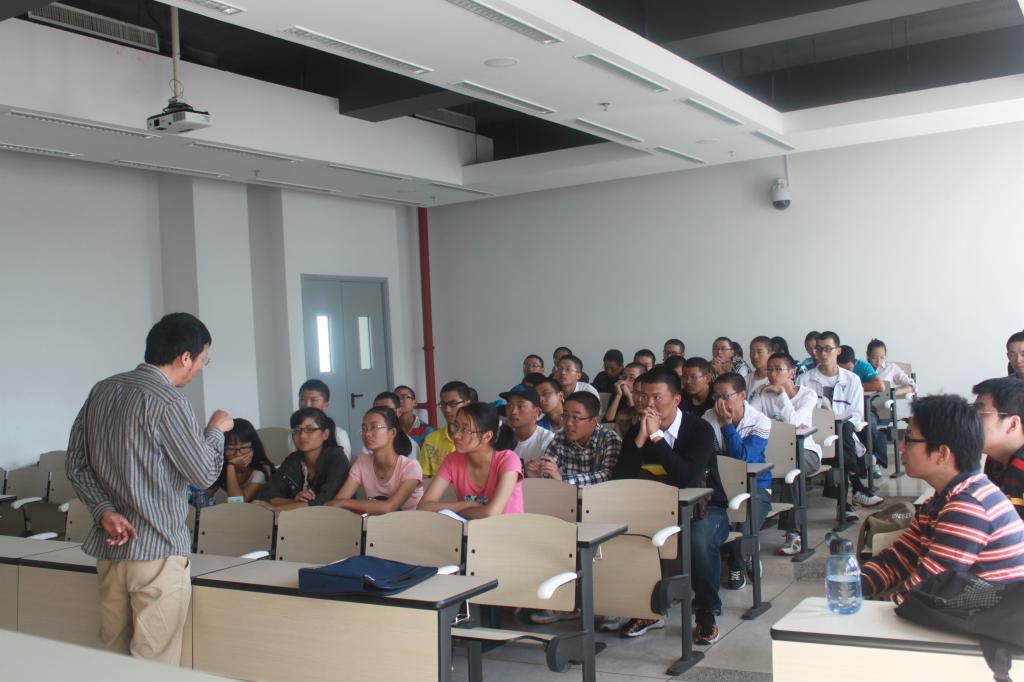 见面会在应用数学系党支部书记邢家省副教授风趣幽默的开场白下很快就热闹起来了。在了解了专业特点、知道了大学的不同、听说了老师的经历后,同学们迫不及待的开始提问:“我们的就业前景如何?”、“学校鼓励社团活动吗?”、“我不聪明,能学好数学吗?”、“如何看待大学生恋爱问题?”,一个接着一个,好在老师们都有准备,遂抖出浑身解数作答。邢家省老师妙语连珠、王海辉老师率直有识、孙玉泉老师沉稳持重、马健老师条理分明,一次次的掌声、一张张的笑脸,没有师生的界限,就像一个温暖的大家庭。