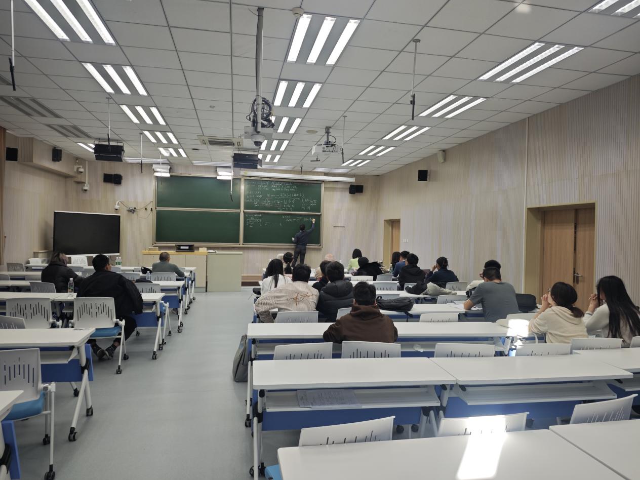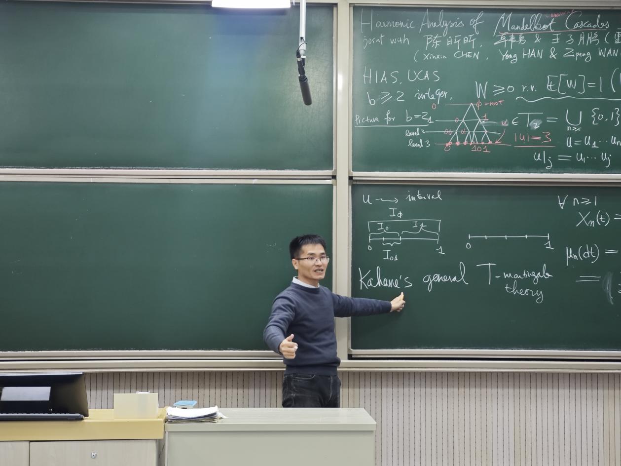 2024年11月5日下午,国科大杭州高等研究院邱彦奇教授应邀在“几何测度论与相关领域讨论班”(2024秋季第3讲)上为数学学院师生做了题为“Harmonic analysis of Mandelbrot cascades”的学术报告,报告由梁湘玉老师主持。来自校内外相关学科专家、师生共计二十人左右出席此次讨论班。