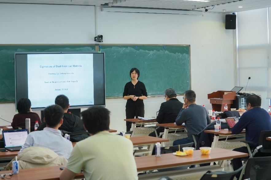 新葡萄8883官网amg官网崔春风教授作《对偶四元数矩阵特征值及其应用》报告。她回顾了对偶四元数矩阵特征值的理论和算法进展,并介绍了其在同时定位与地图构建和编队控制中的应用。